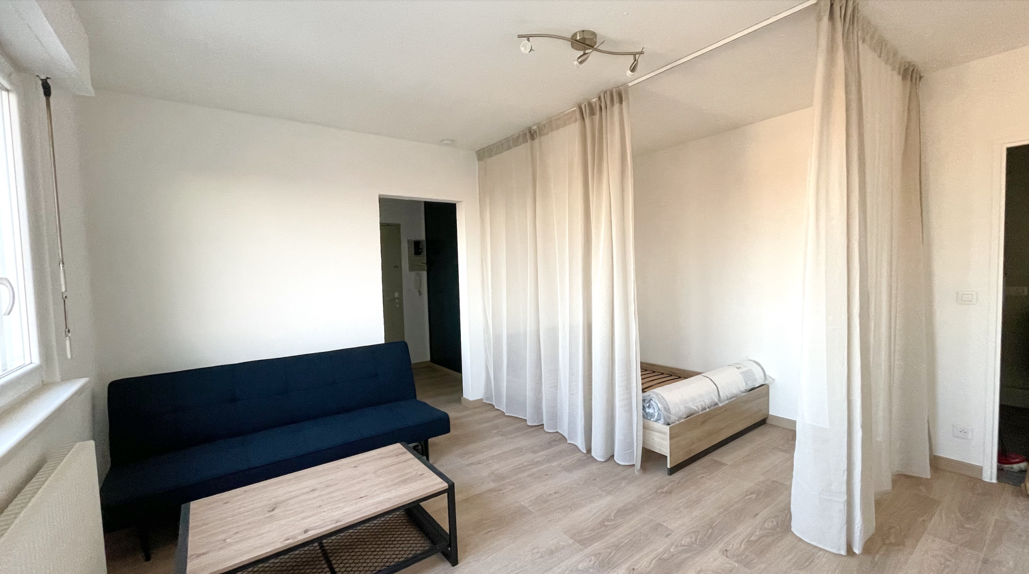 Situé à une centaine de mètres d'une ligne de bus, proche des commerces et avec vue sur les Vosges, cet appartement vous séduira par ses prestations haut de gamme. À l'entrée un grand placard vous permettra de ranger toutes vos affaires et vêtements. Vous trouverez également une cuisine indépendante et équipée (four - plaque de cuisson vitrocéramique - hotte - frigo - lave linge) ainsi qu'une salle de bain entièrement refaite: faux plafond avec spots, cabine de douche carrelée et WC suspendu. La pièce de vie d'environ 20m2 offre un espace nuit avec un grand lit 140cmx190cm, ainsi qu’un espace jour avec un canapé 2 places, petite table basse et un meuble télévision. La vue par la fenêtre sans vis-à-vis vous offrira un panorama sur tout le plateau vosgien. La résidence dispose de la fibre et est entretenue par un syndic professionnel, Une cave vient compléter ce bien. La cour collective offre de nombreuses places de parking et quelques places sont également disponibles dans la rue. Une description rapide de votre situation personnelle et professionnelle sera demandée. Les mails automatiques ne seront pas traités. Provisions de charges 100€ (chauffage gaz collectif avec régularisation annuelle, eau chaude, eau froide, entretien des communs)